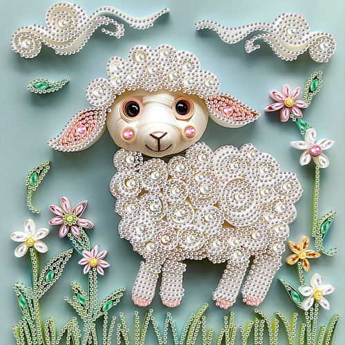 Diamond Painting - Partial Special Shaped - Quilling paper sheep (30*30CM)