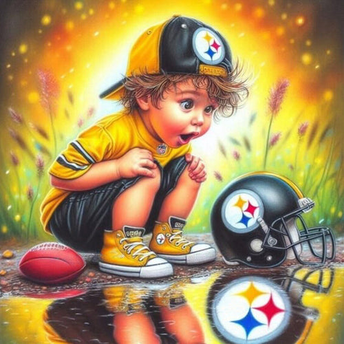 Diamond Painting - Full Round - Boy and Pittsburgh Steelers helmet (40*40CM)