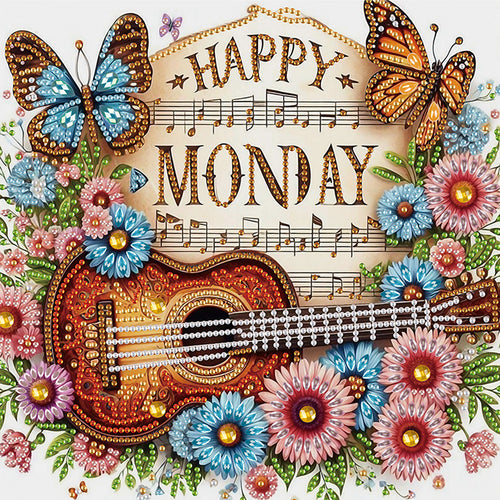 Diamond Painting - Partial Special Shaped - Notes Guitar Flower (30*30CM)