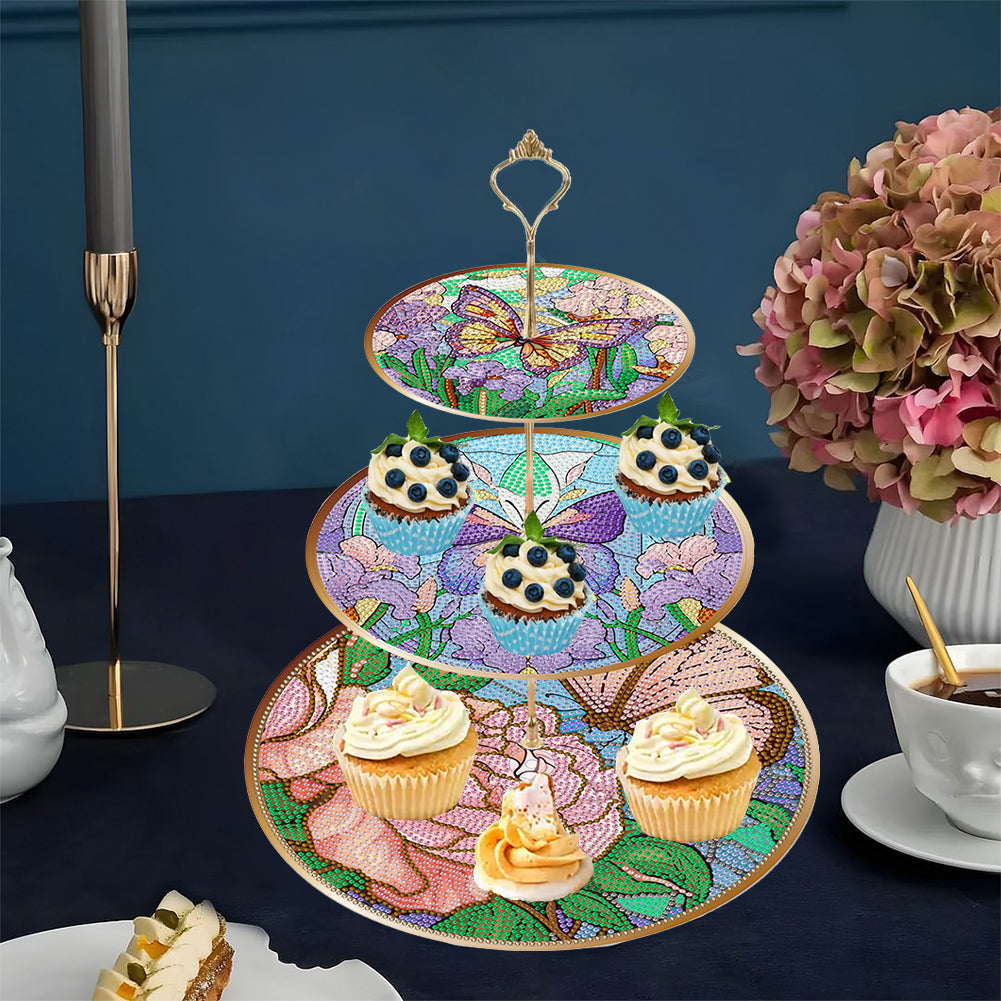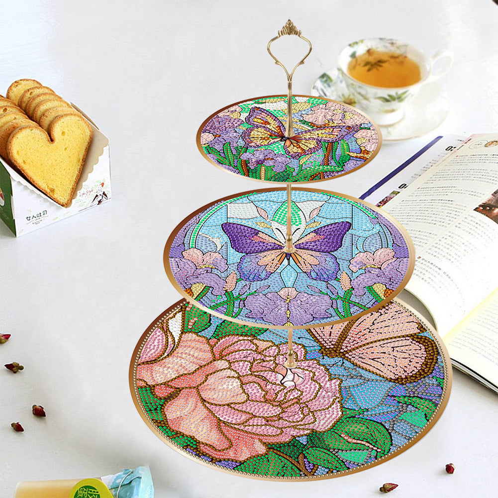3 Tier Acrylic Butterfly Pattern 5D DIY Diamond Painting Serving Tray Home Decor