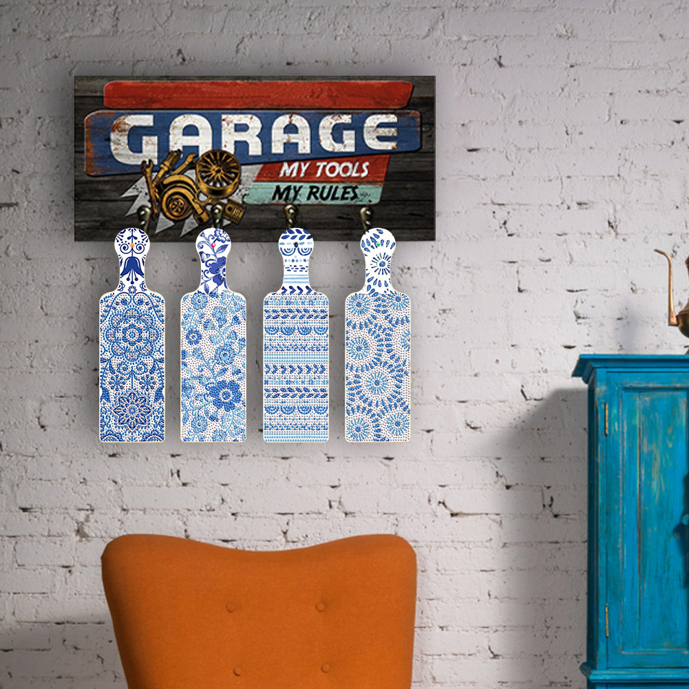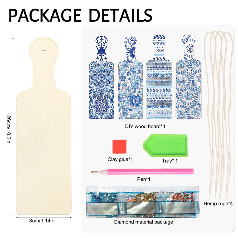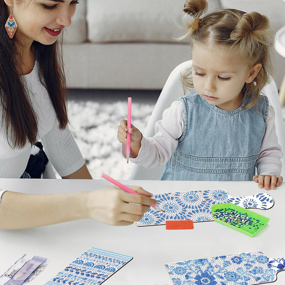 4Pcs Flower Pattern 5D DIY Diamond Painting Serving Tray for Desk Coffee Table