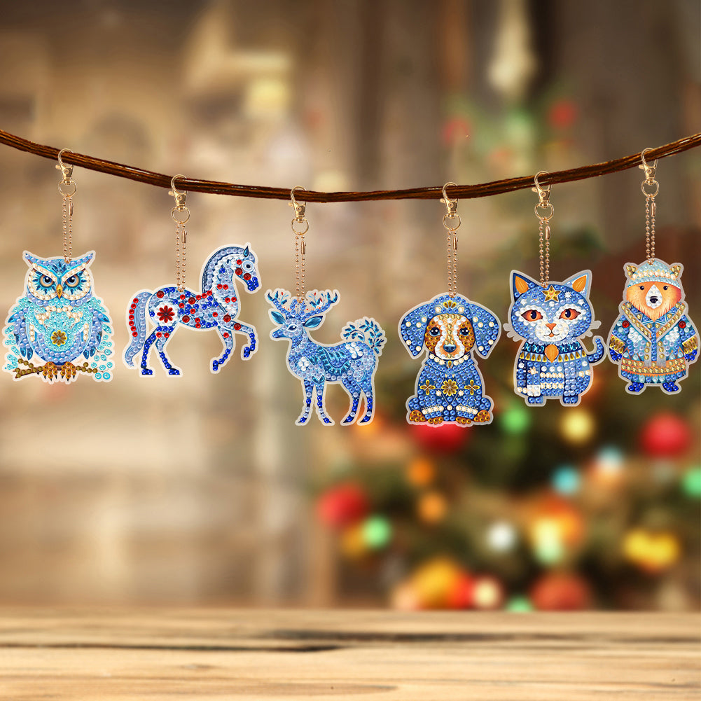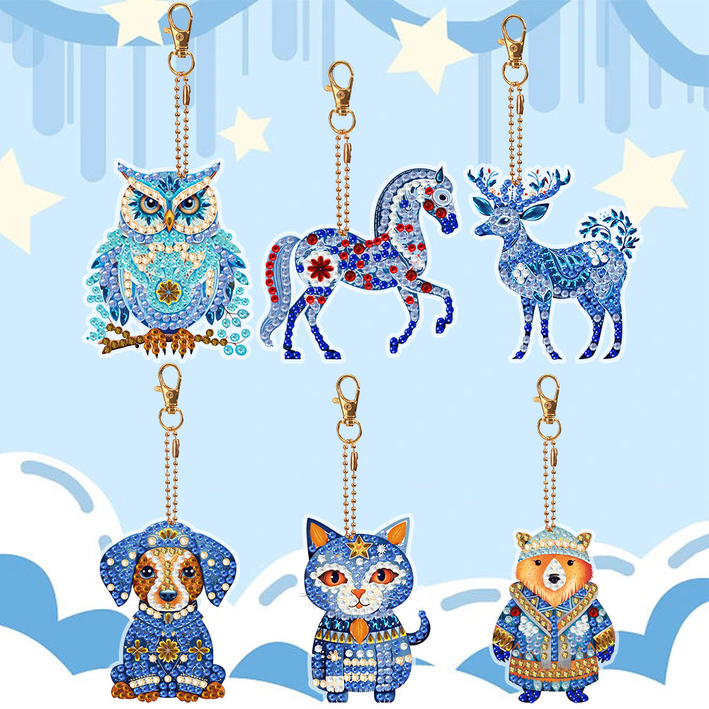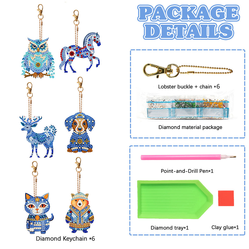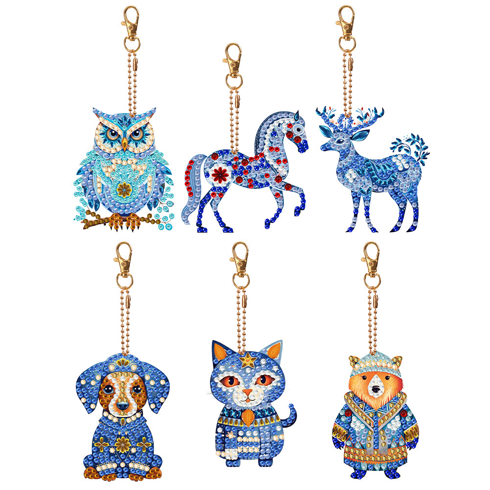 6 PCS Double Sided Special Shape Diamond Painting Keychain (Papercutting Animal)