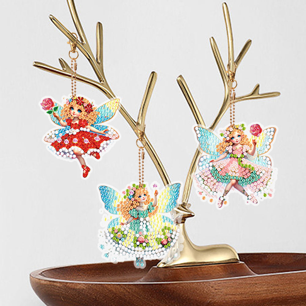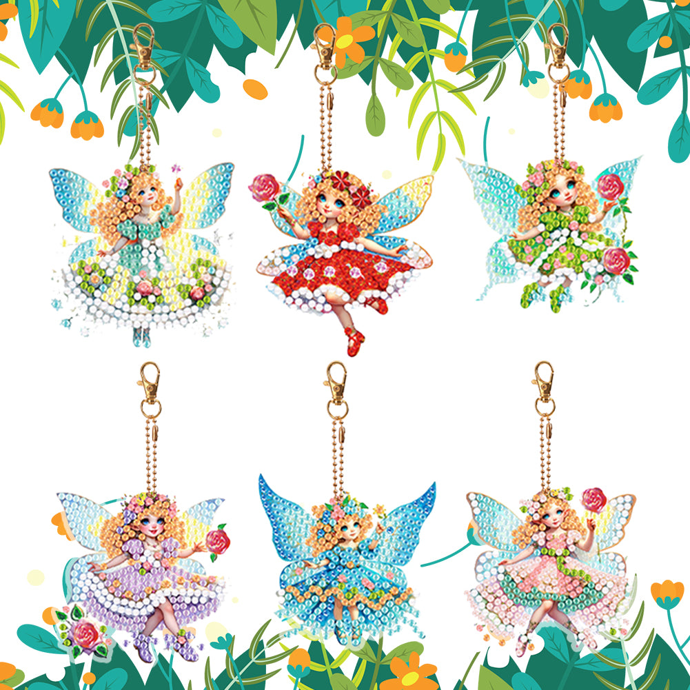 6Pcs Double Side Animal Elf Gnome Diamond Art Keyring Diamond Painting Keychain