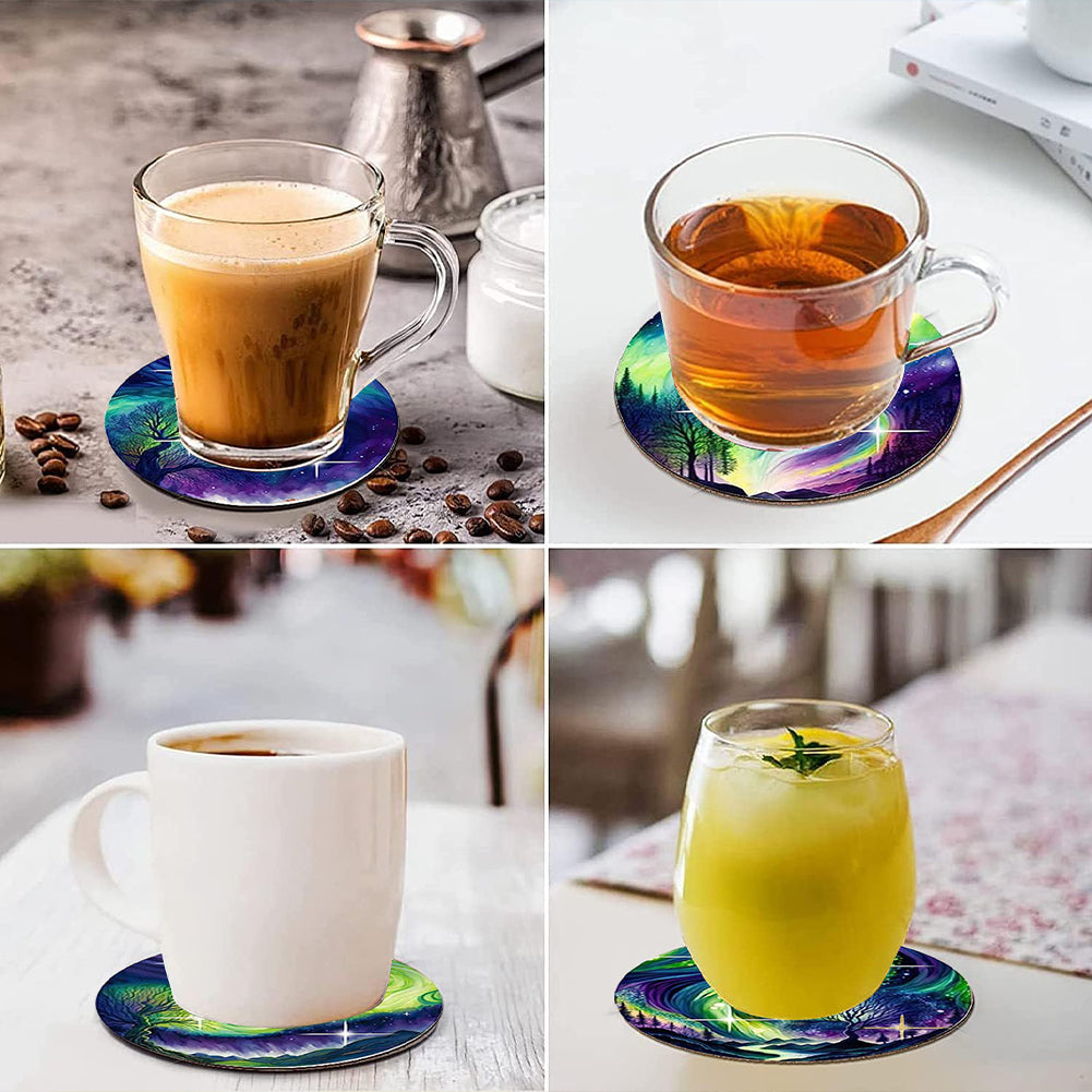8 PCS Wooden Diamond Painting Art Coasters Kits with Holder (Gorgeous Aurora)