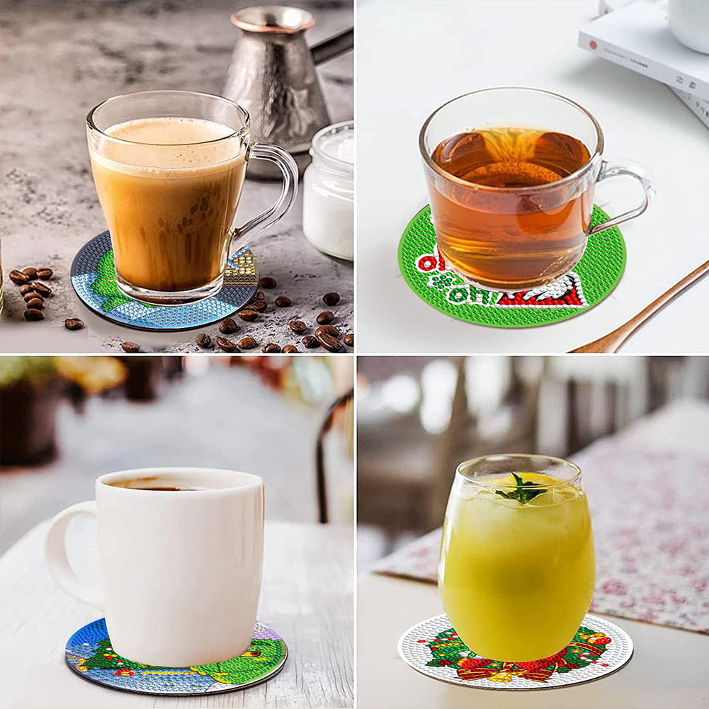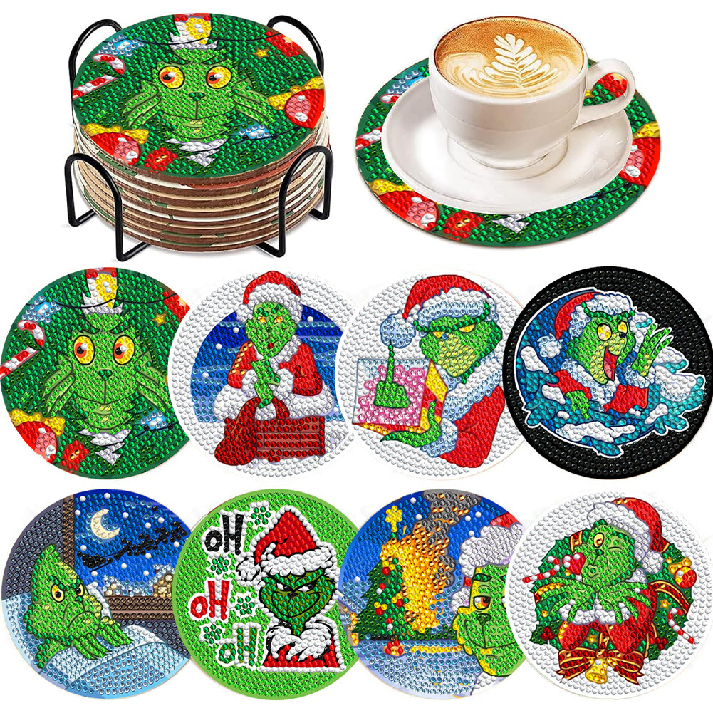 8 PCS Wooden Diamond Painting Coasters Kits with Holder for Adult Kid (Grinch)