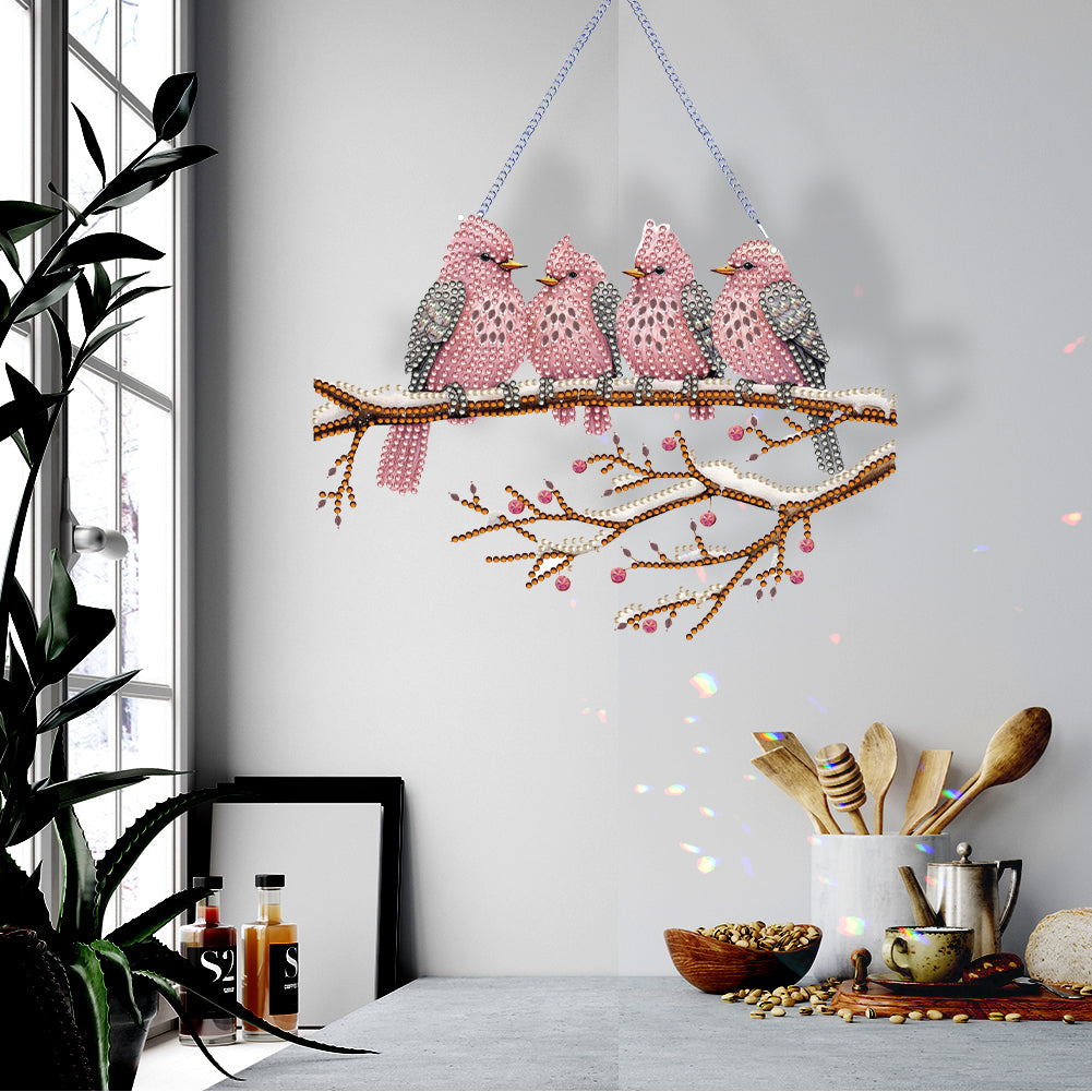 Acrylic Birds on Branch Single-Sided 5D DIY Diamond Painting Hanging Pendant