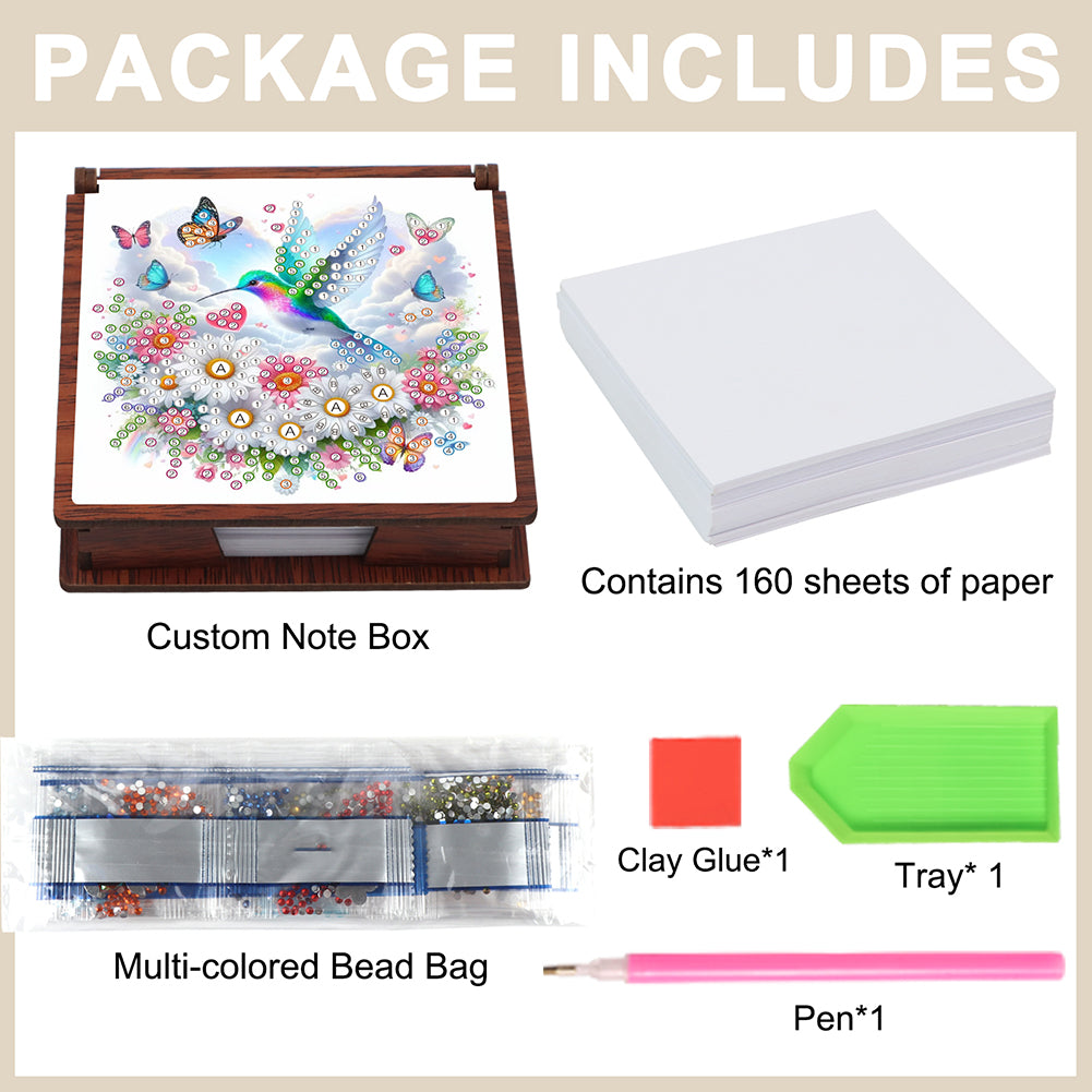Wooden 5D Diamond Painting Kit Note Box with 160 Sheets DIY Diamond Art Note Box for Home Office School Supplies Holiday Gifts