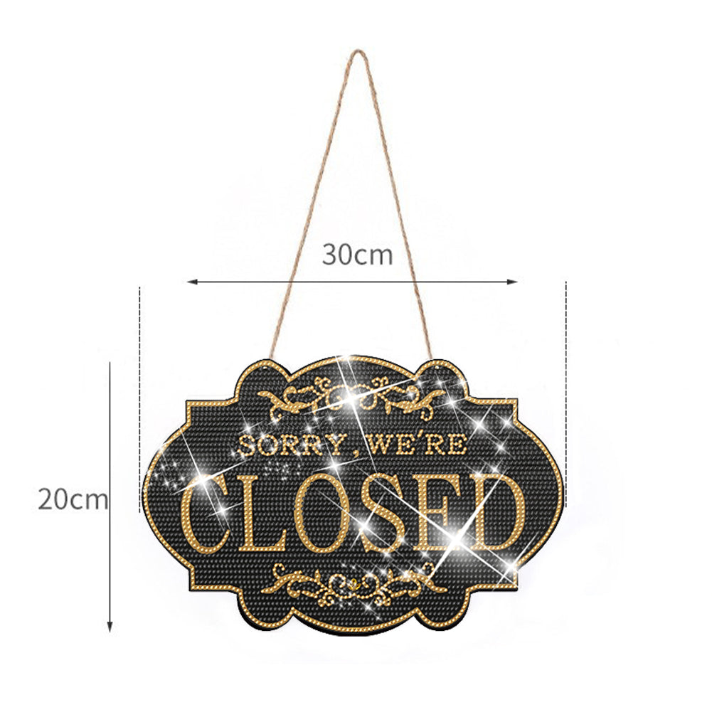 Wooden Shop Sign Open Closed 5D DIY Diamond Painting Dots Pendant for Wall Decor