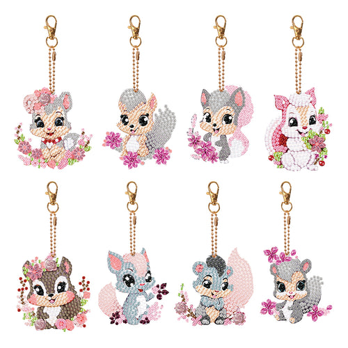 8PCS Double Sided Round Diamond Painting Art Keychain Pendant (Squirrel #6)