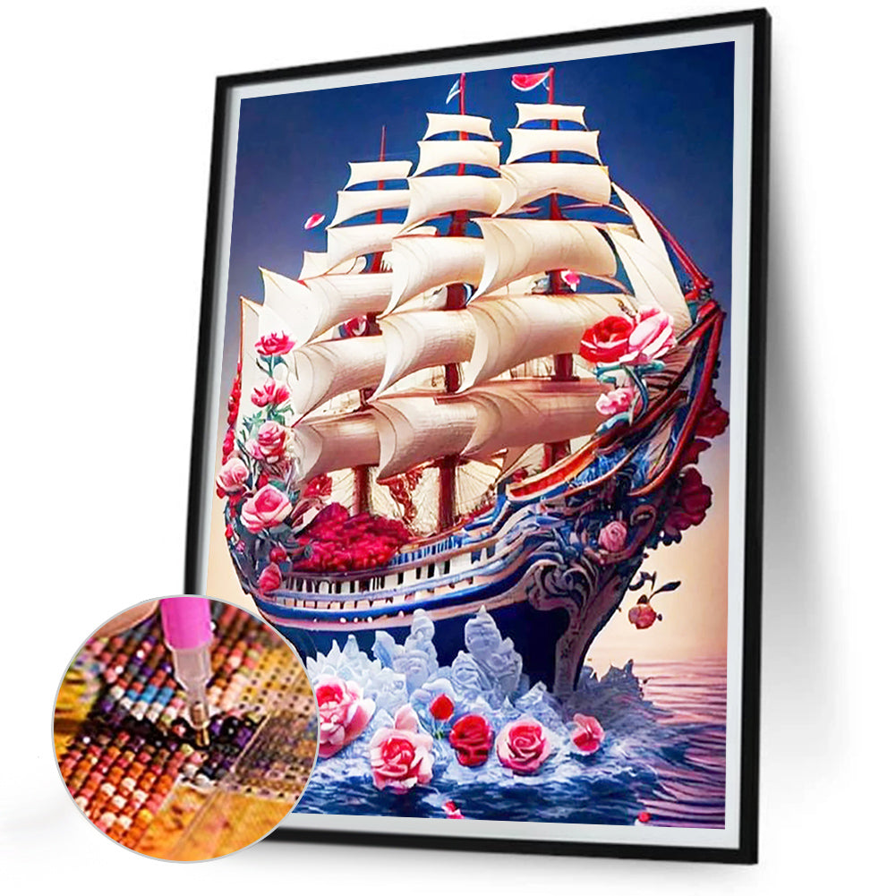• Load image into Gallery viewer, Diamond Painting - Full Round - red rose boat (30*40CM)
