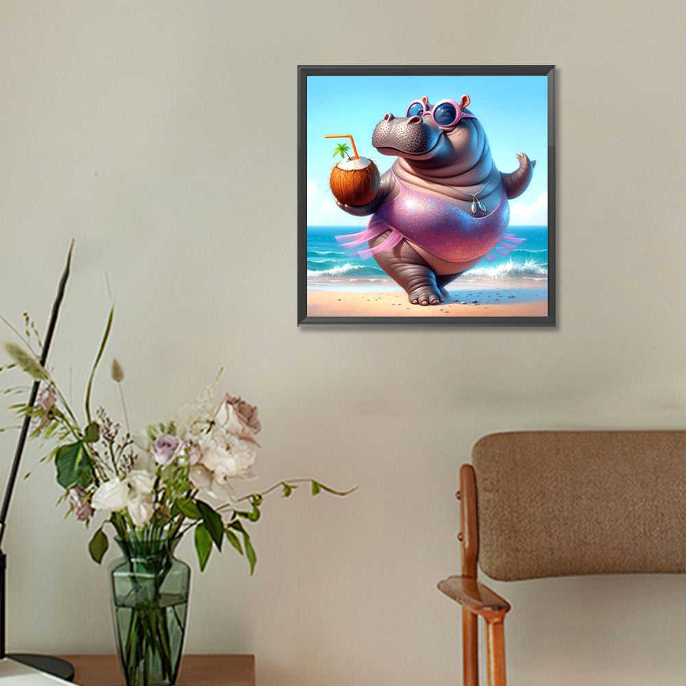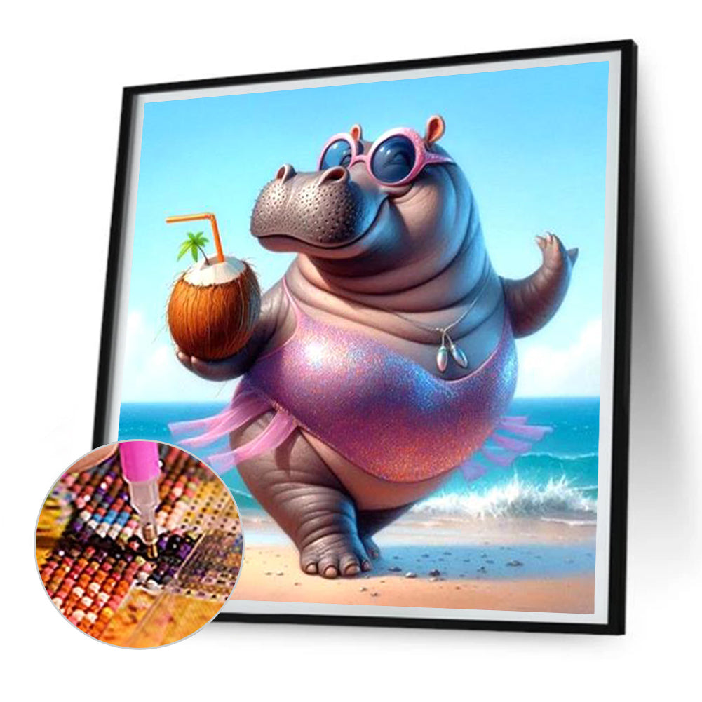 Diamond Painting - Full Round - Summer hippopotamus (30*30CM)