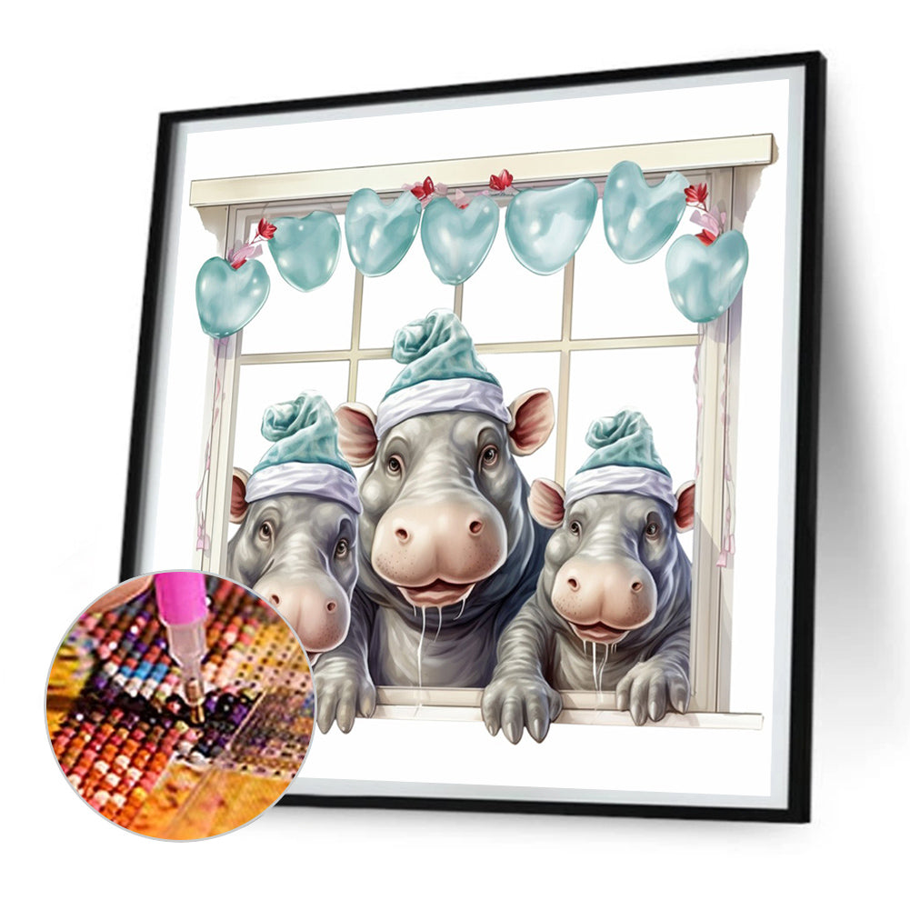 Diamond Painting - Full Round - window animal hippopotamus (30*30CM)