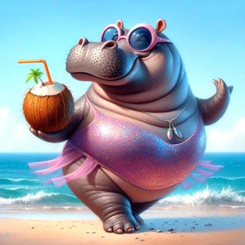 Diamond Painting - Full Round - Summer hippopotamus (30*30CM)