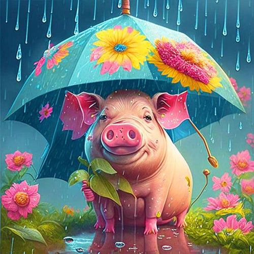 Diamond Painting - Full Round - Umbrella animal piggy (30*30CM)