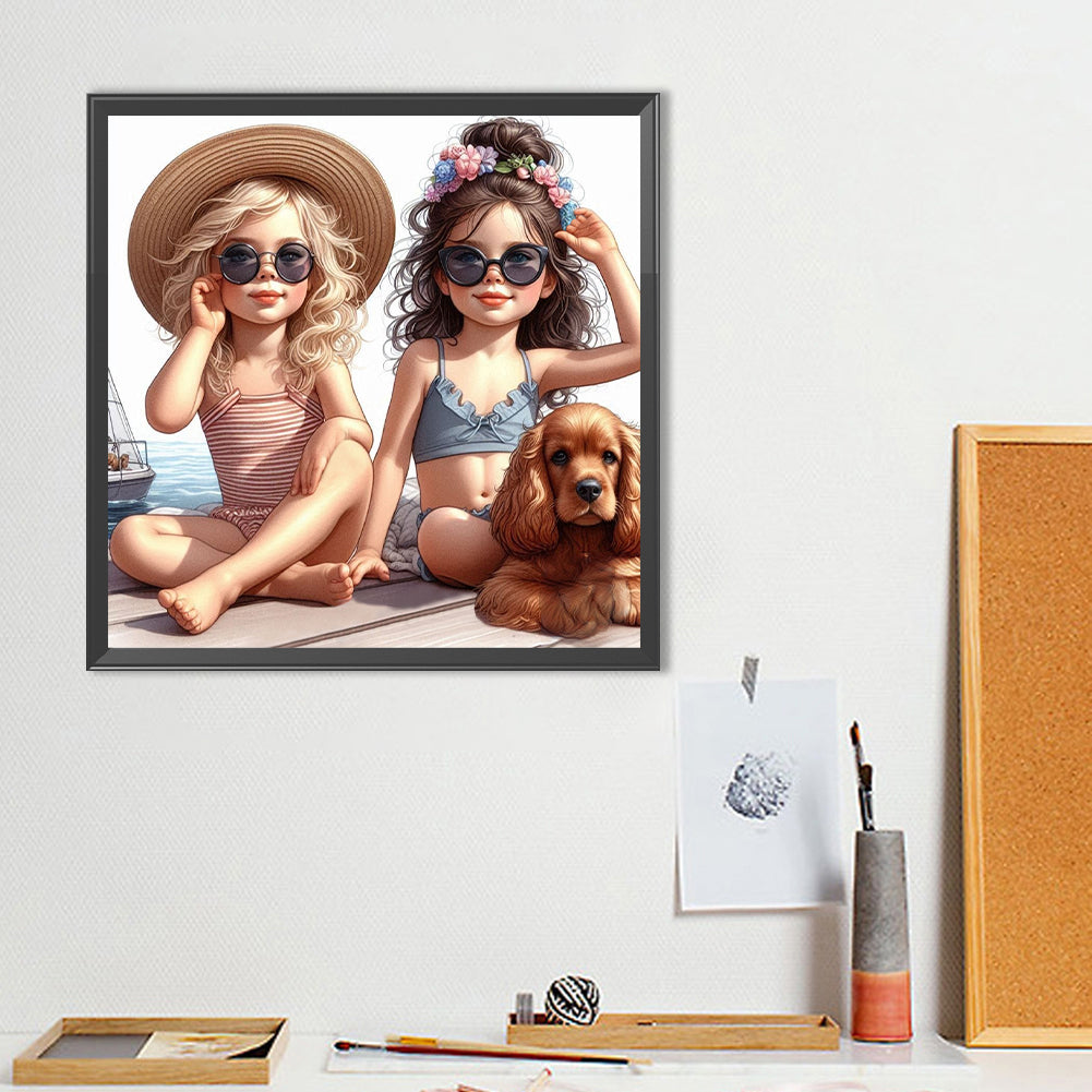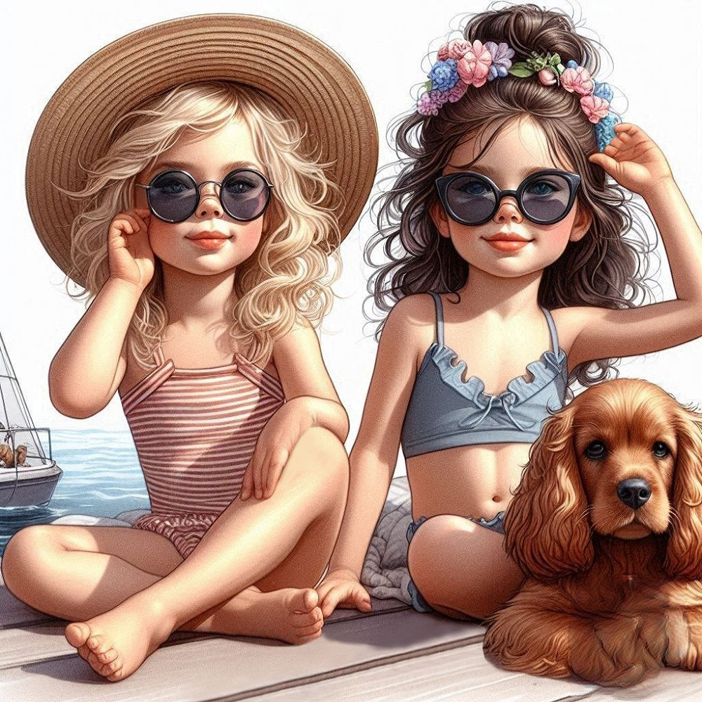 Diamond Painting - Full Round - Two Girls With Sunglasses (40*40CM)