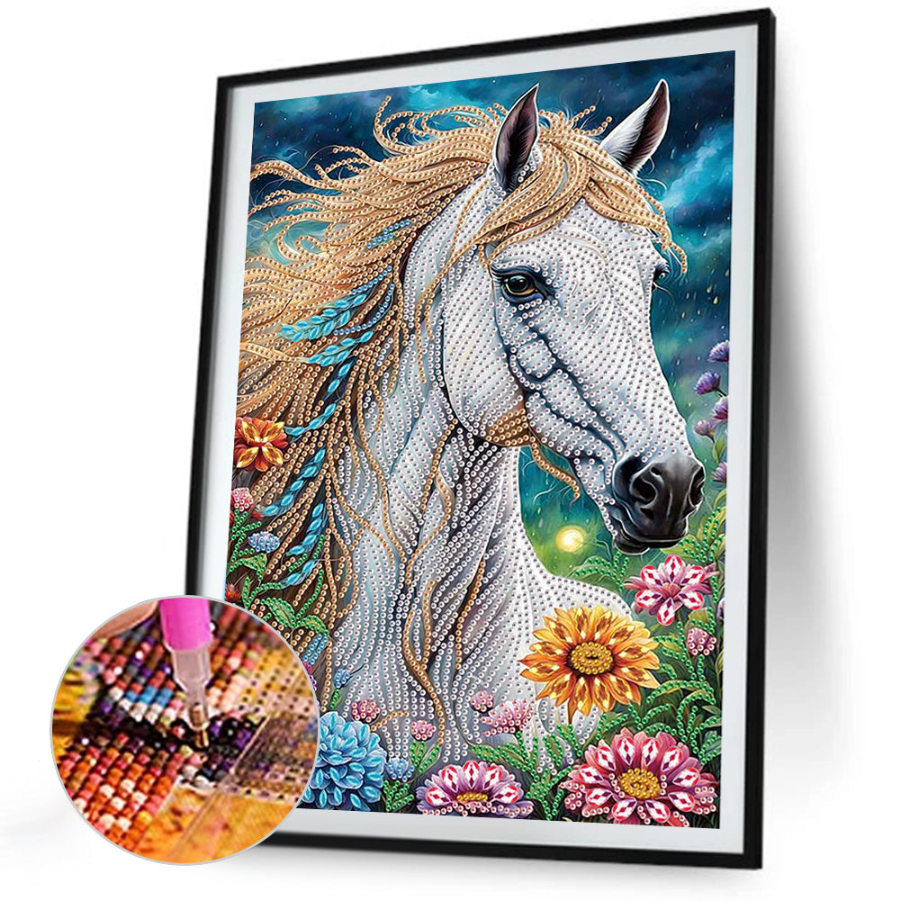 Diamond Painting - Partial Special Shaped - Flower White Horse (30*40CM)