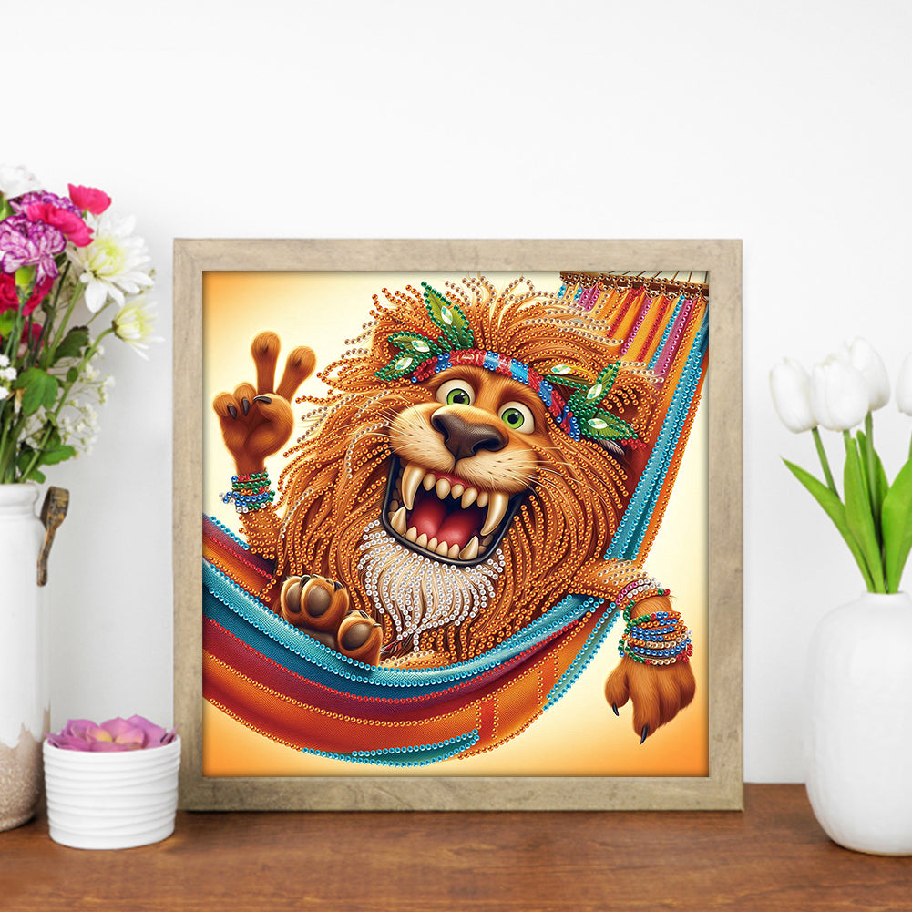 Diamond Painting - Partial Special Shaped - Funny Lion (30*30CM)