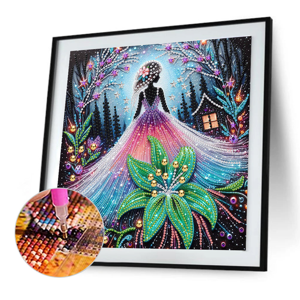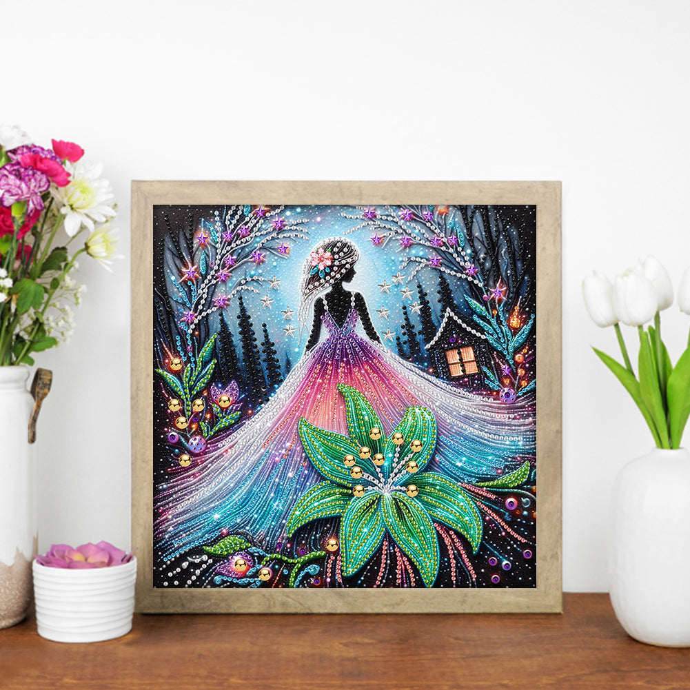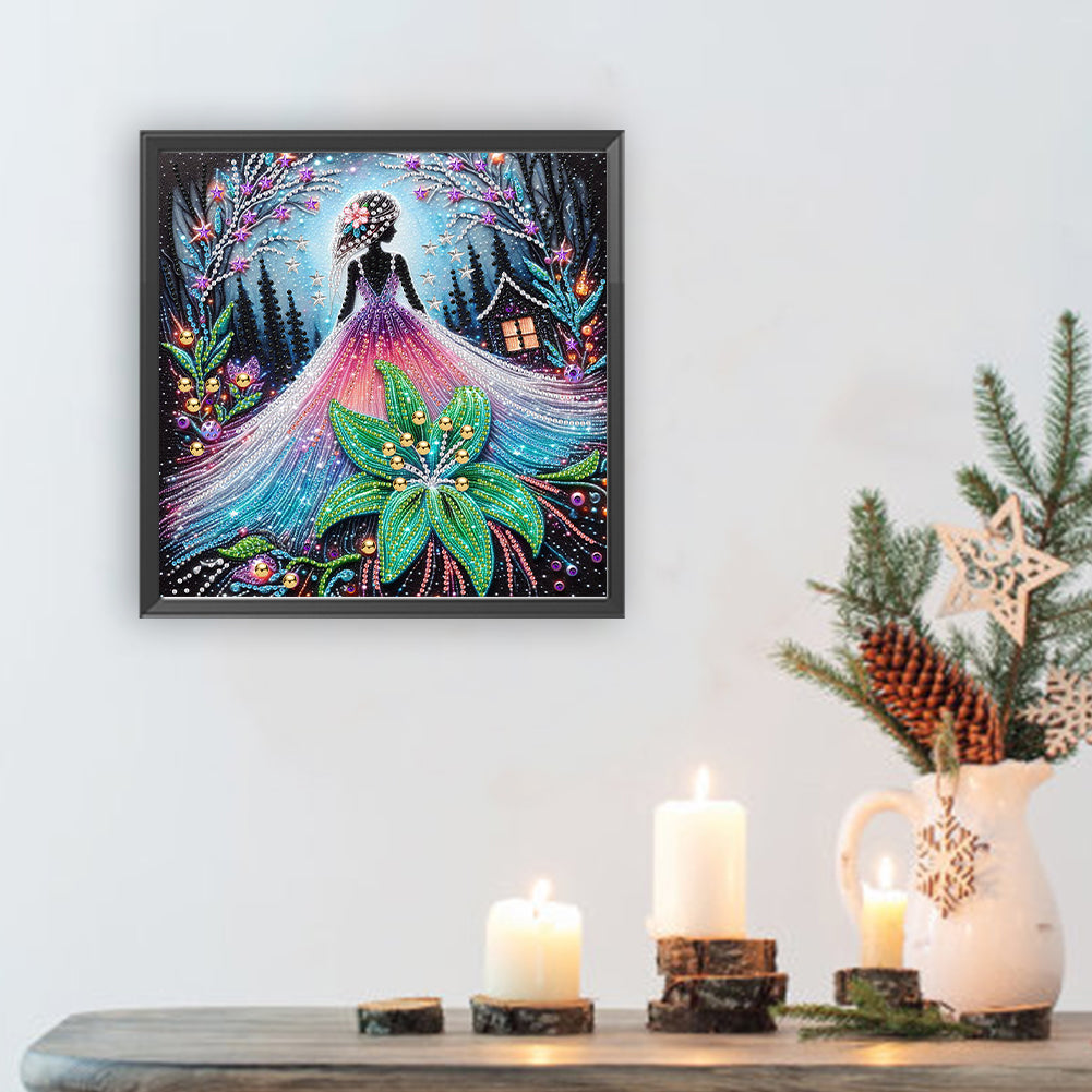 Diamond Painting - Partial Special Shaped - Girl And Flower (30*30CM)