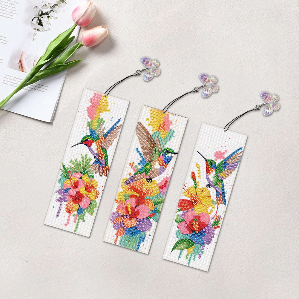 3Pcs Special Shape Hummingbird Flower DIY Diamond Painting Bookmarks Kits