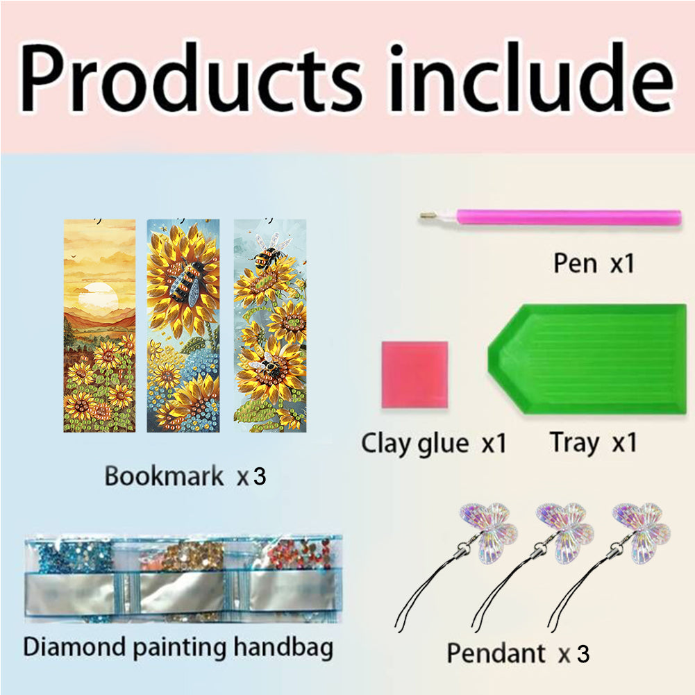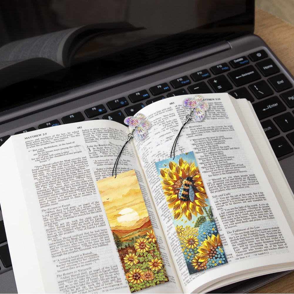 3Pcs Special Shaped Sunflower Bee DIY Diamond Painting Bookmark Making Kit Decor