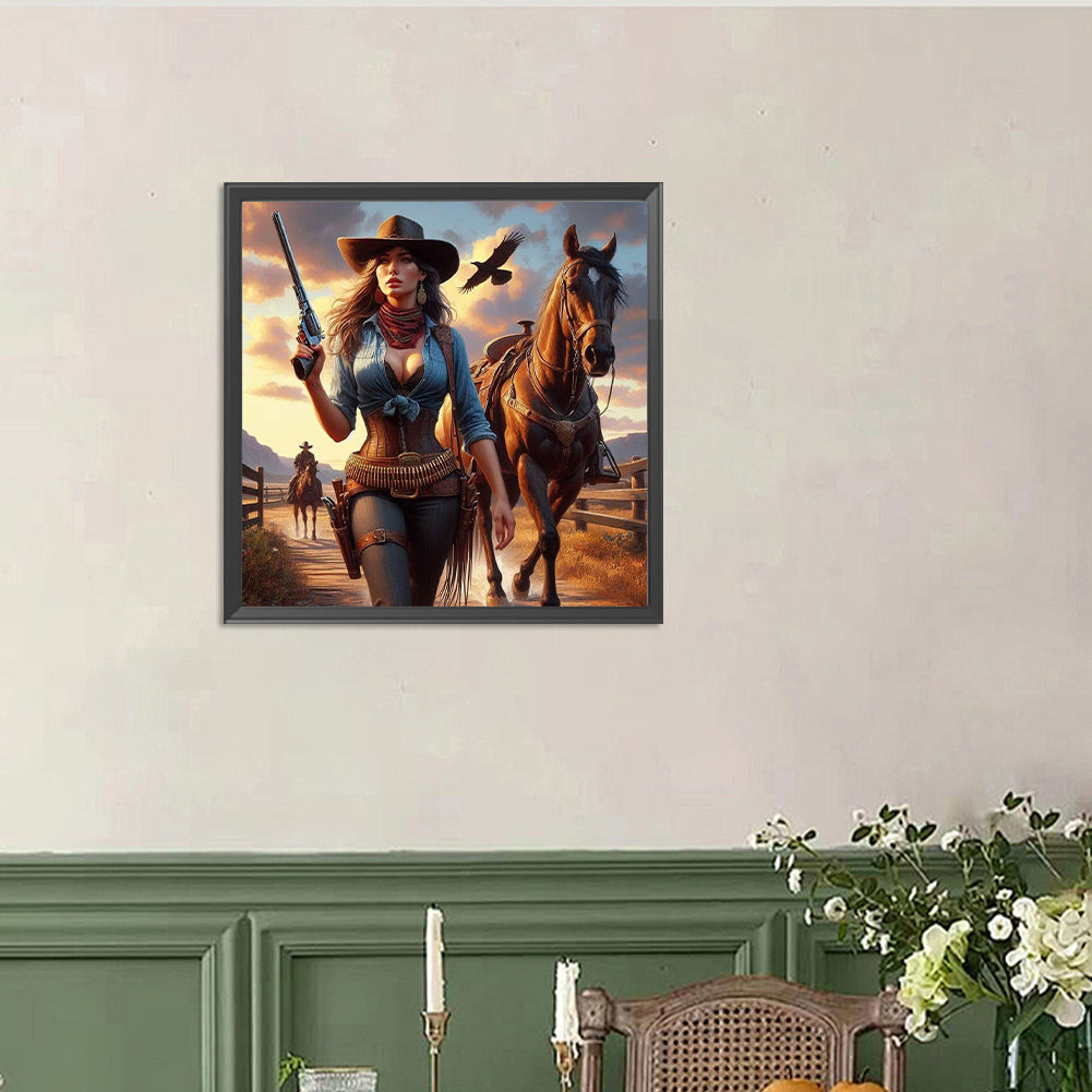Diamond Painting - Full Round - Cool cowboy girl and horse (40*40CM)