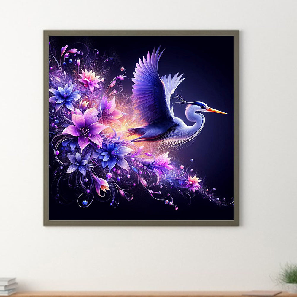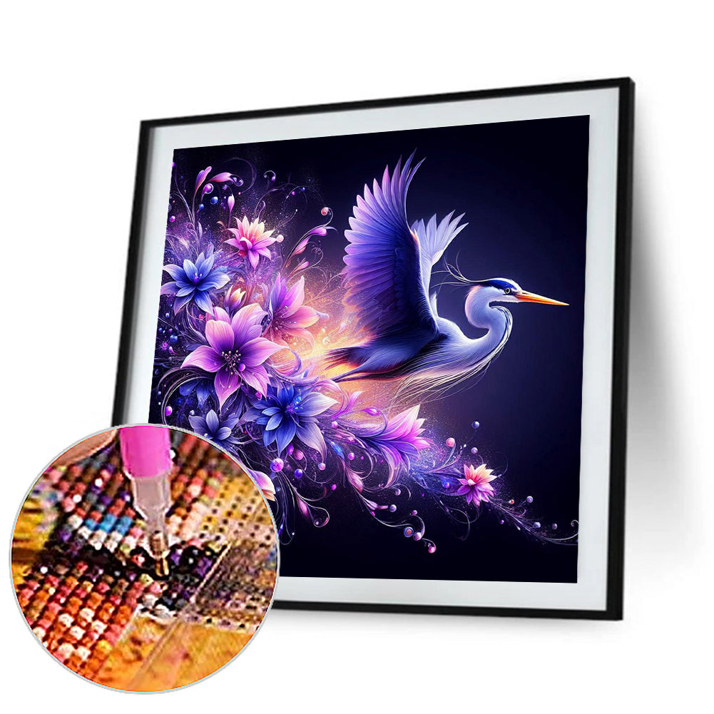 Diamond Painting - Full Round - Flying crane on purple fantasy background (40*40CM)