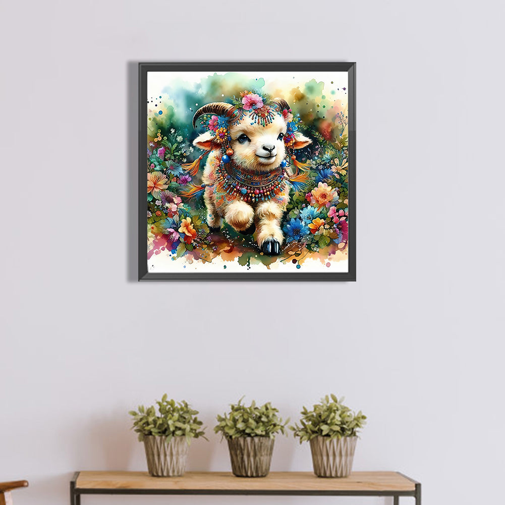 Diamond Painting - Full Round - Indian colorful feathered white sheep (40*40CM)