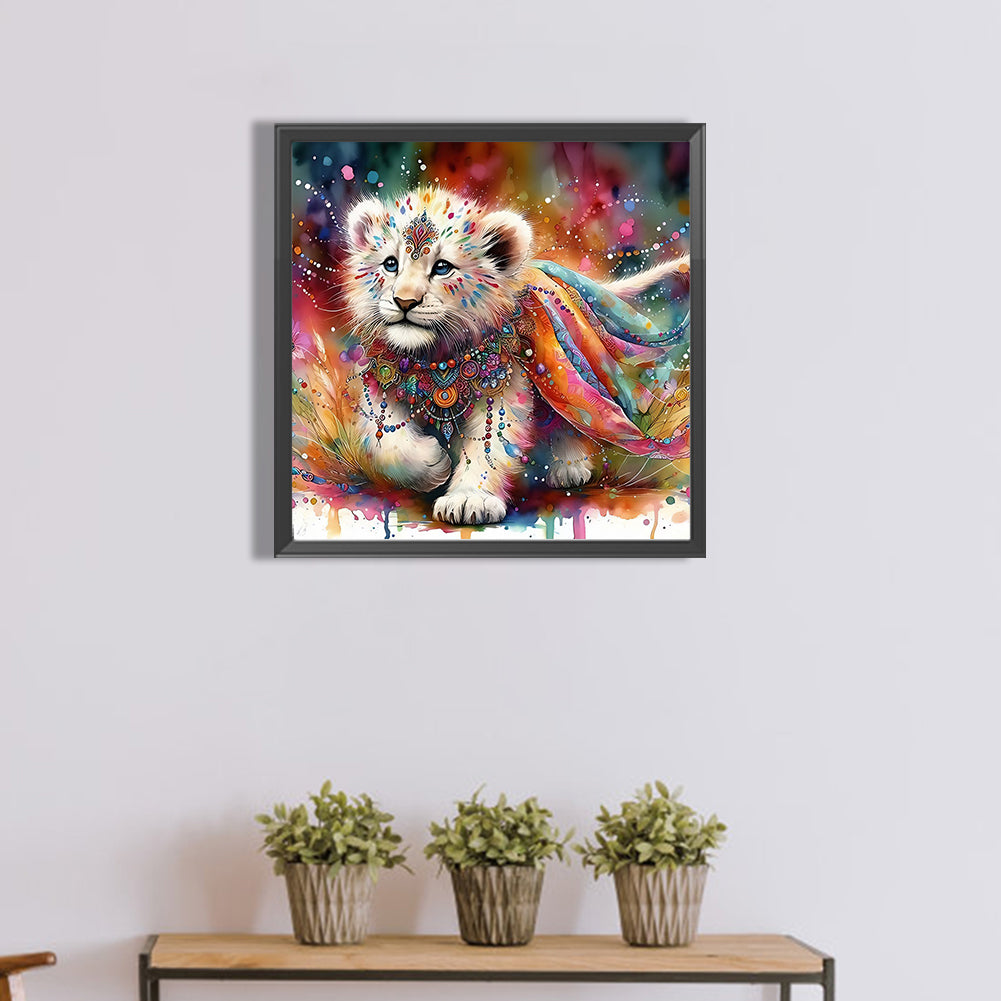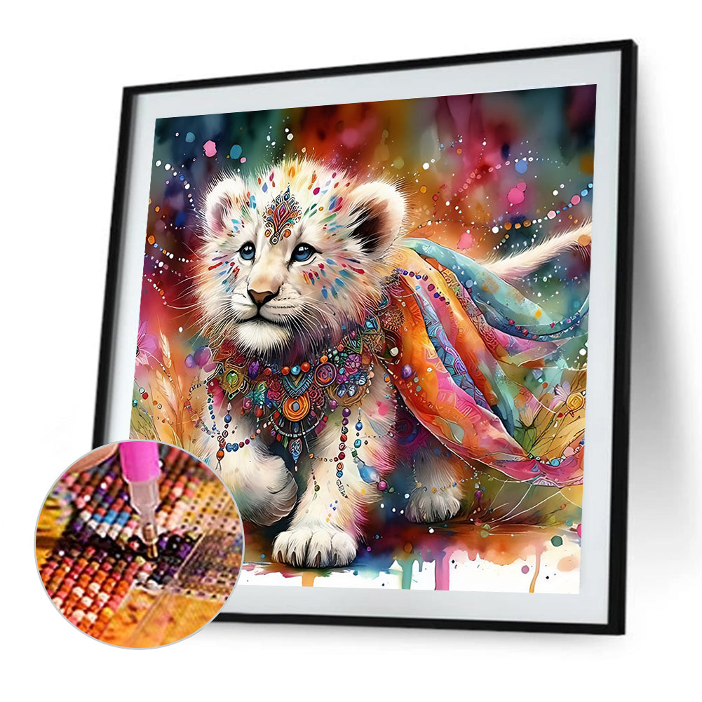 Diamond Painting - Full Round - Indian white lion with colorful feathers (40*40CM)