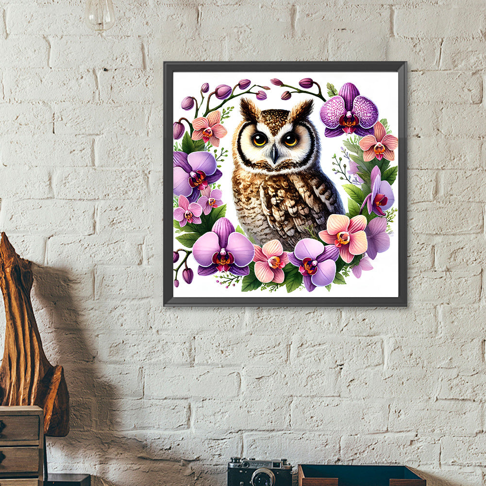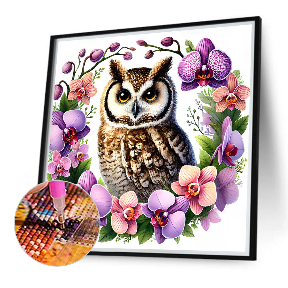 Diamond Painting - Full Round - Owl and Phalaenopsis (40*40CM)