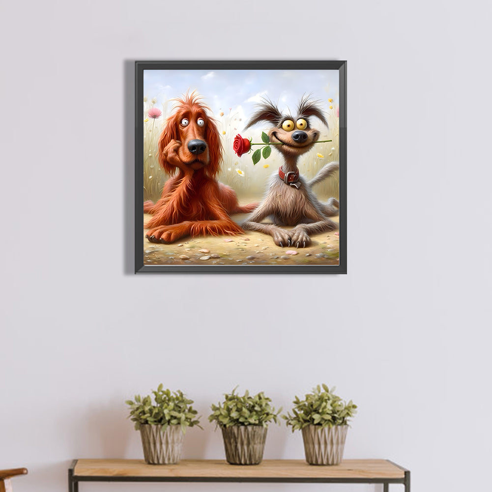 Diamond Painting - Full Round - Puppy with flower in mouth (40*40CM)