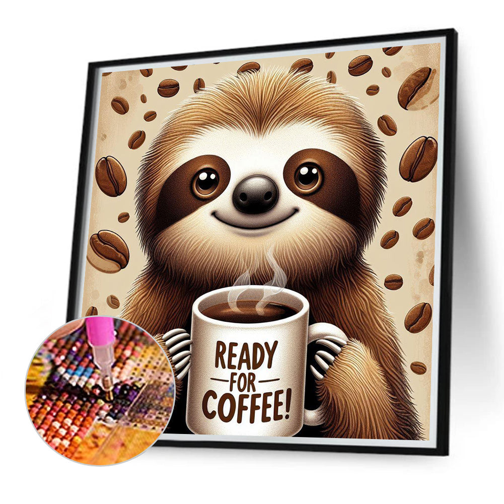 Diamond Painting - Full Round - Sloth drinking coffee (40*40CM)