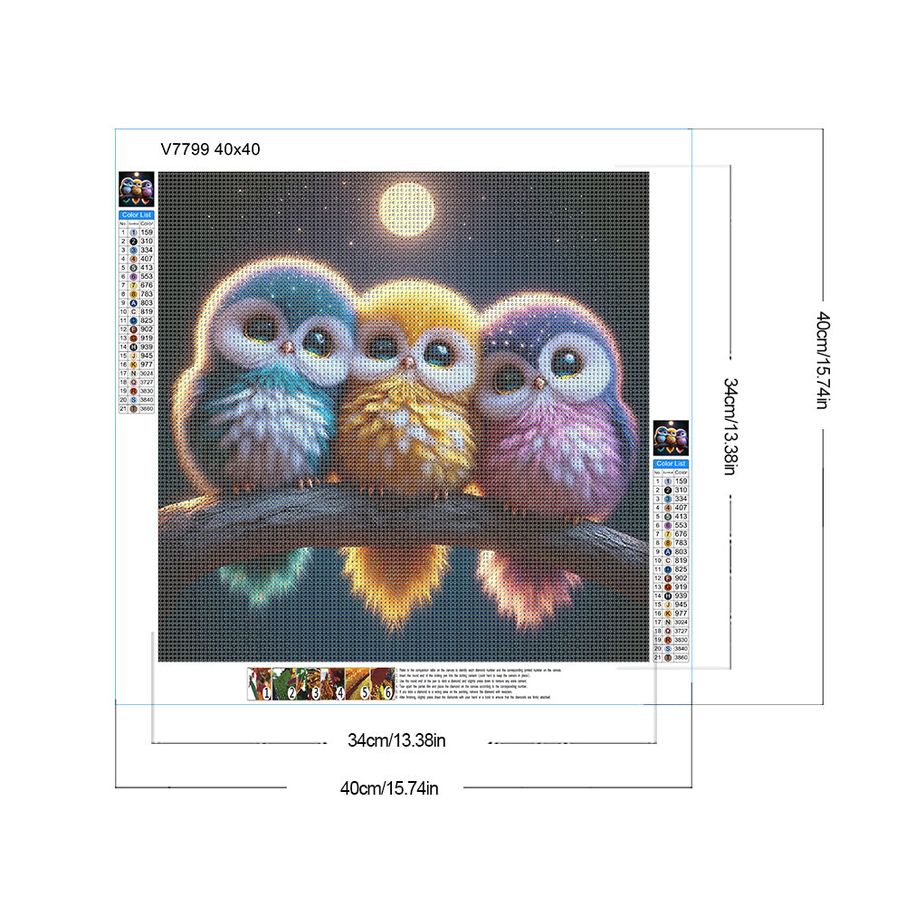 Diamond Painting - Full Round - Three Owls (40*40CM)