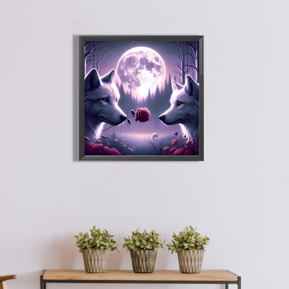 Diamond Painting - Full Round - Wolf with flower in mouth (40*40CM)