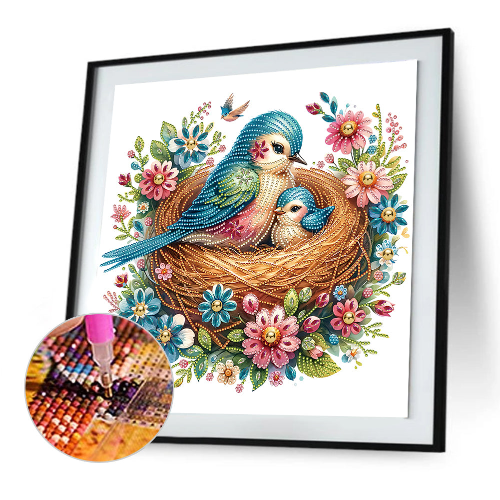 Diamond Painting - Partial Special Shaped - Mother bird and baby bird (40*40CM)