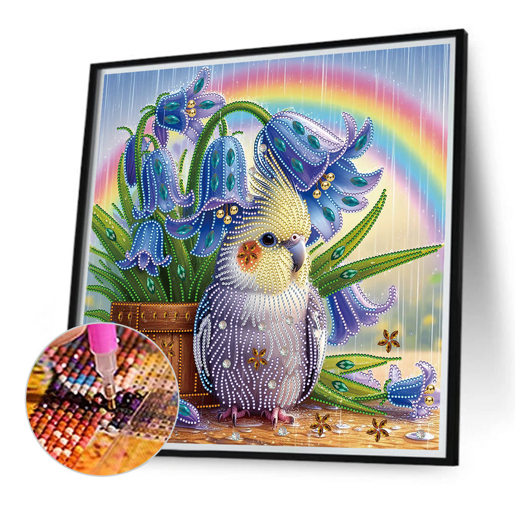 Diamond Painting - Partial Special Shaped - Rainbow and parrots (40*40CM)