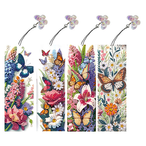 4Pcs Special Shape Butterfly Flower Diamond Painting Bookmark Art Projects