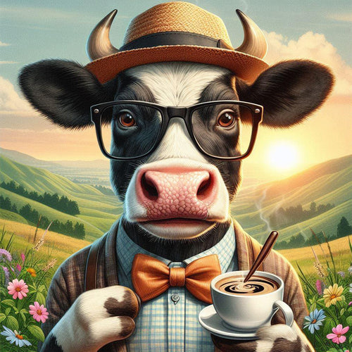 Diamond Painting - Full Round - cow drinking coffee (40*40CM)