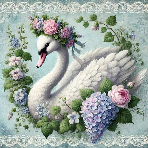 Diamond Painting - Full Round - White Swan With Flowers (40*40CM)
