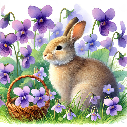 Diamond Painting - Full Round - Rabbit And Flower (40*40CM)
