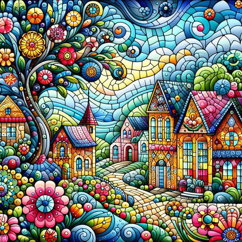Diamond Painting - Full Round - Colorful house street (40*40CM)
