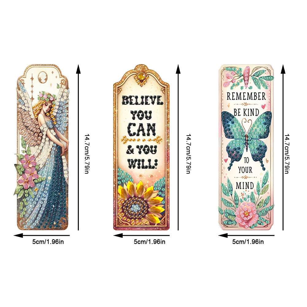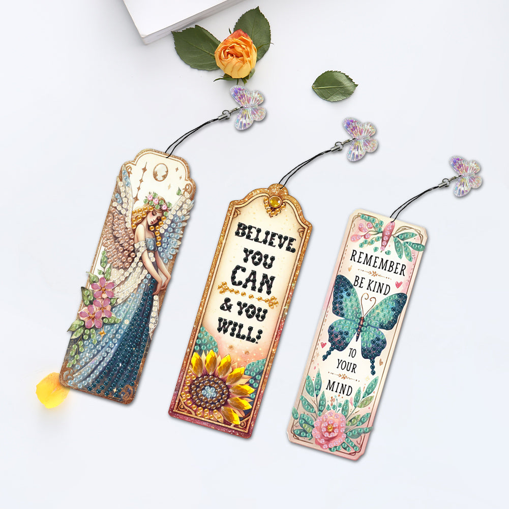 3Pcs Special Shape Butterfly Angel Diamond Painting Bookmark Making Kit 14.7x5cm