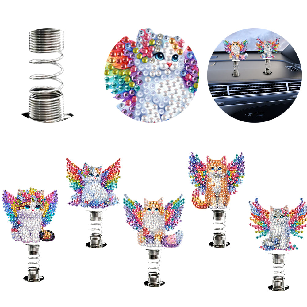 5pcs 2D Flat Angel Cat DIY Diamond Painting Shake Car Ornaments for Center Console