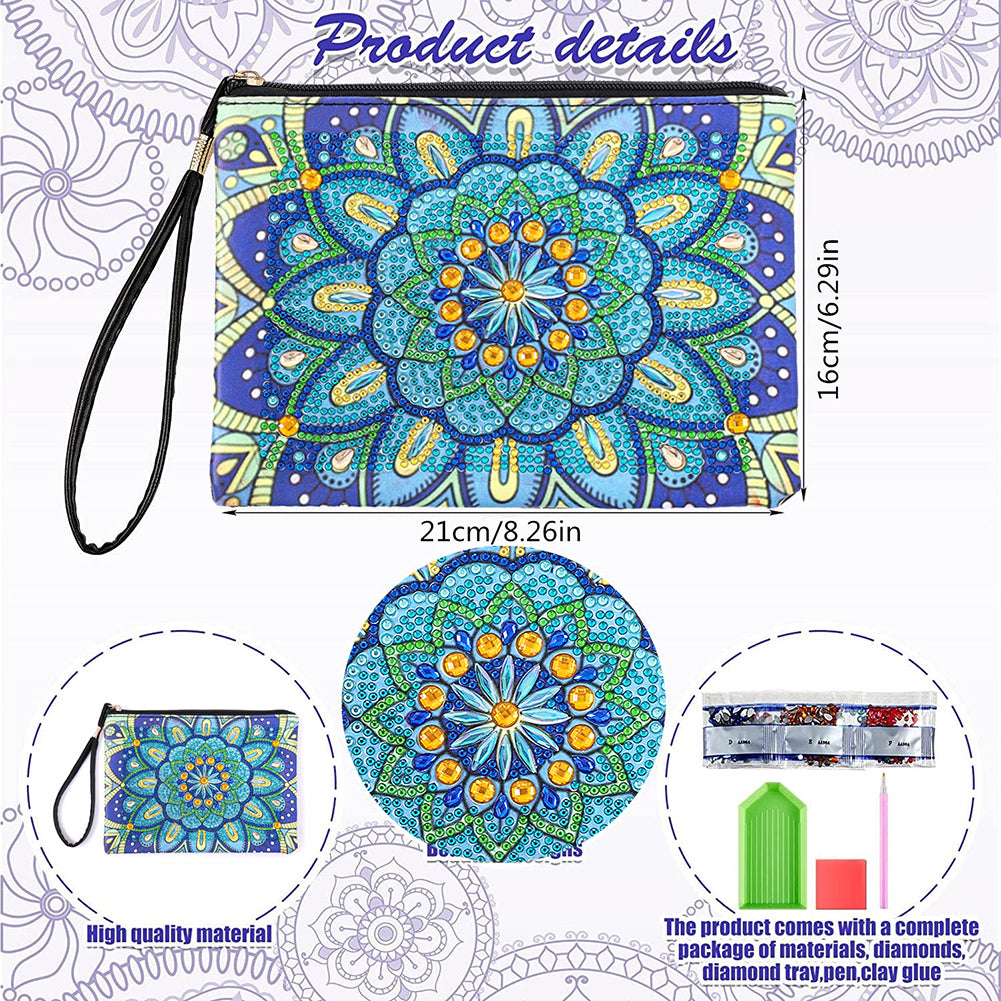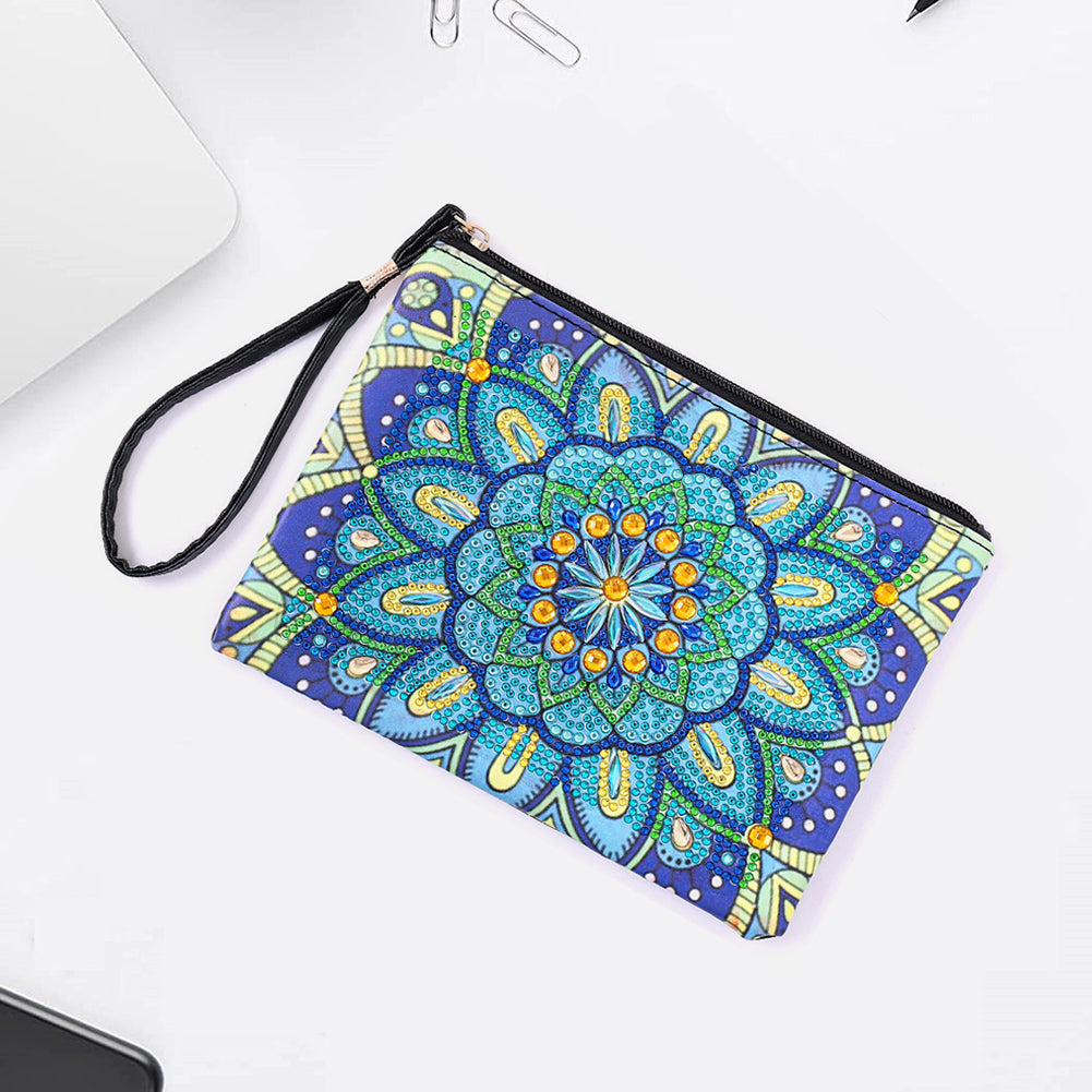 DIY Diamond Art Cosmetic Bag Flowers Single Sided PU Women Clutch (BD-18)