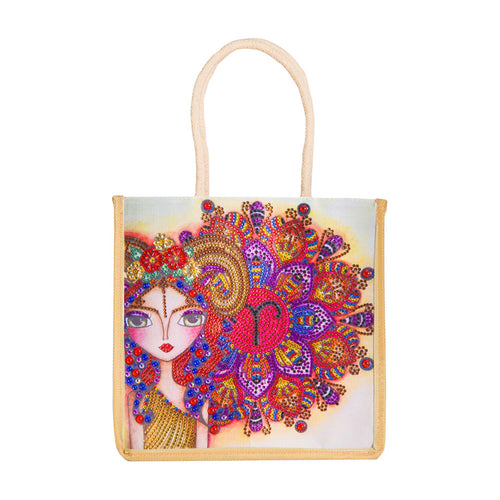 5D Diamond Painting Linen Bags DIY Aries Girl Eco Shopping Tote