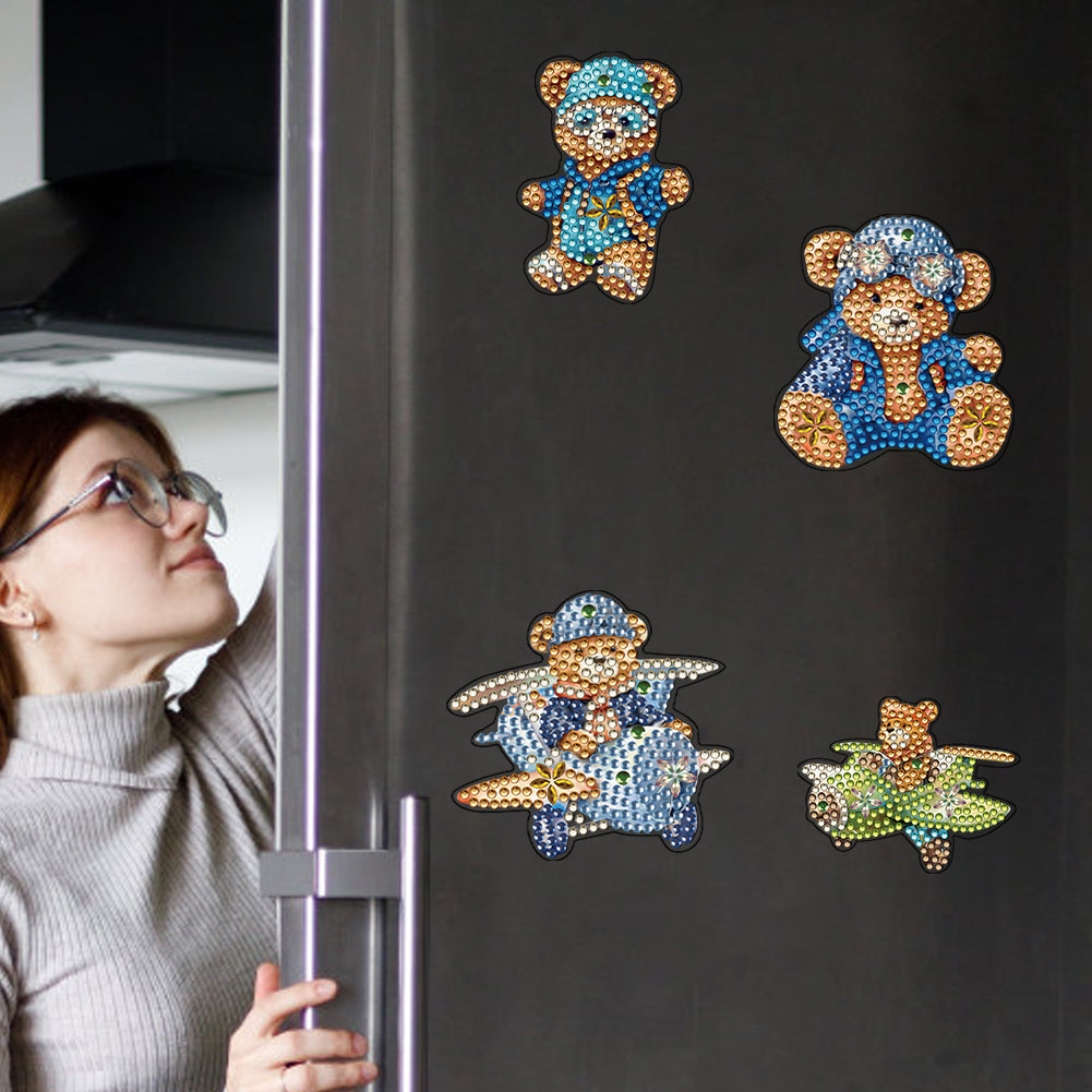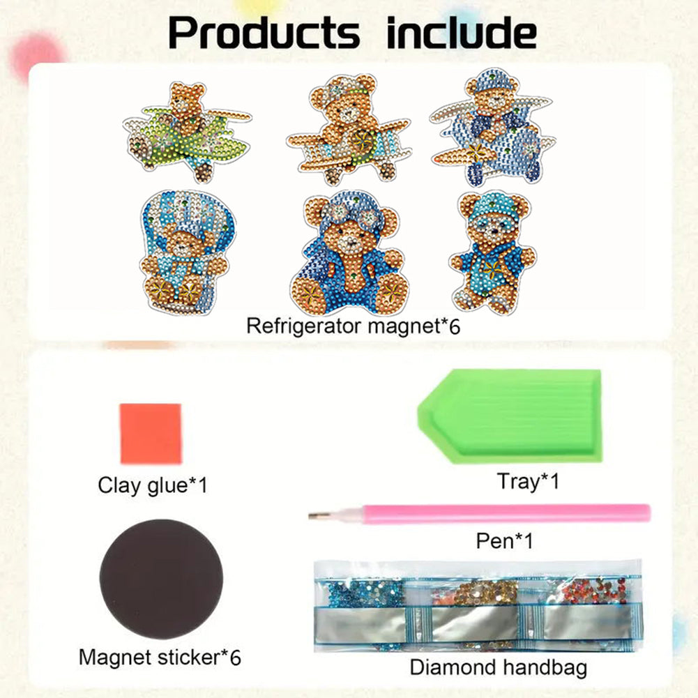6Pcs Animal Diamond Painting Refrigerator Magnets for Home Decor (Flying Bear)