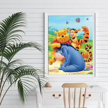 DIY Full Drill Round Diamond Painting Kit Mosaic Resin Color Cute Animation Bear Tiger Picture for Home Room Wall Decor