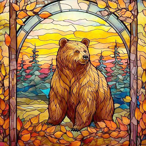 Diamond Painting - Full Round - stained glass brown bear (30*30CM)