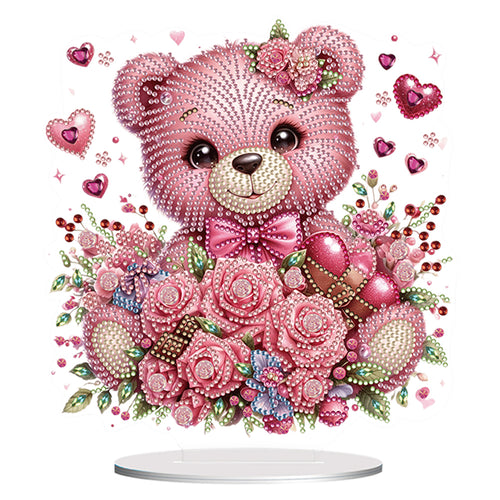 Acrylic Diamond Painting Desktop Decoration for Office Desktop Decor (Rose Bear)