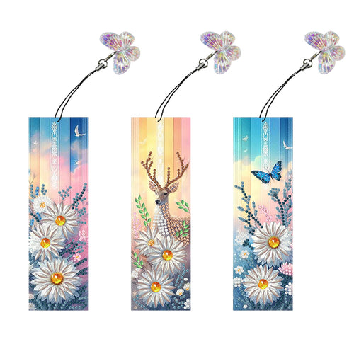 3Pcs Special Shape Christmas Animals Diamond Painting Bookmark for Bookworms