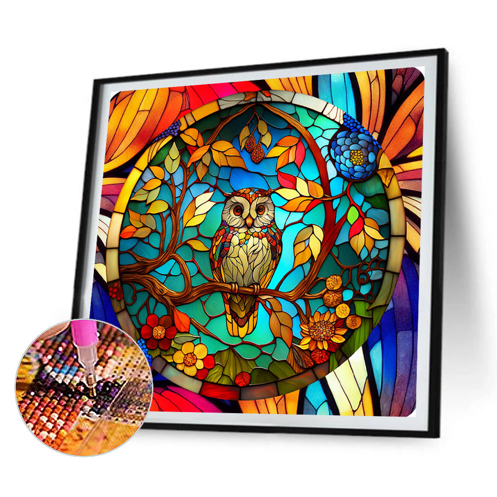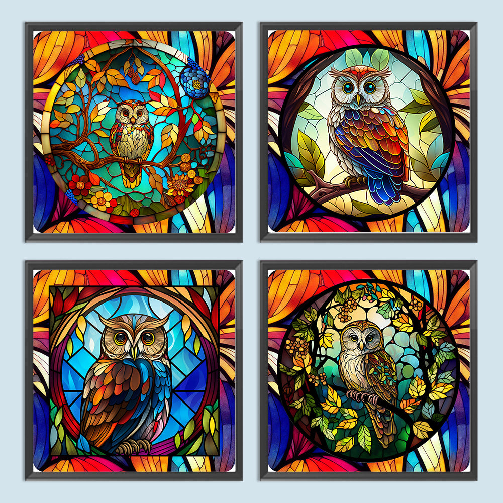 4pcs Diamond Painting Set - owl glass painting (30*30CM)